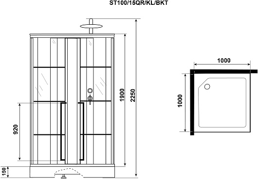 Душевая кабина Niagara Standart 100x100 R - арт. ST100/15QR/KL/BKT.
