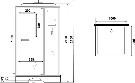 - Размер (ШxГxВ): 100 x 100 x 215 см.