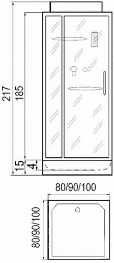 - Размер: 900x900x2170 мм.