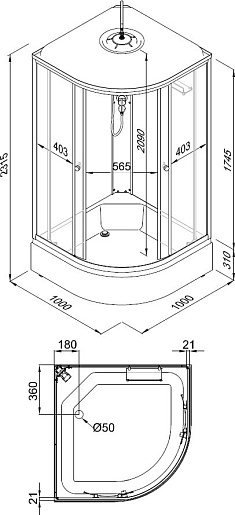 - Высота поддона, 31 см.