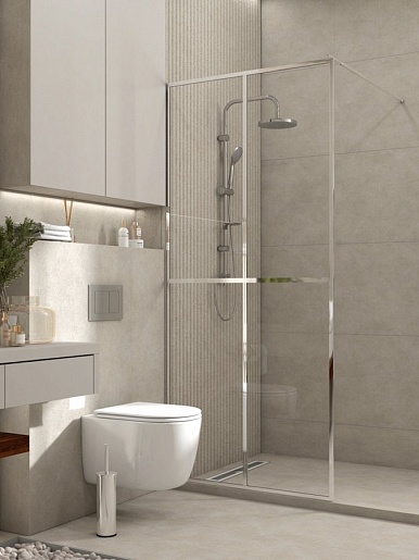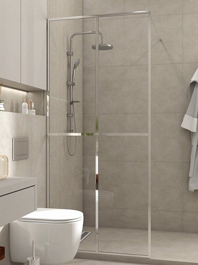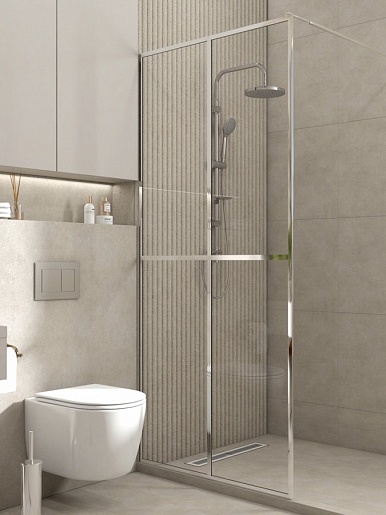 - прозрачное стекло и хромированный алюминиевый профиль.