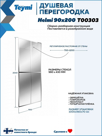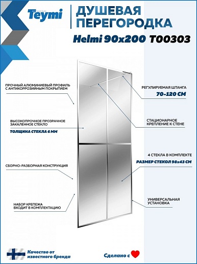 Teymi Душевая перегородка Helmi 90x200 T00303