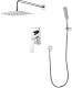 Комплектация: смеситель, шланг, душевая лейка, шланговое подключение, держатель лейки, верхний душ.