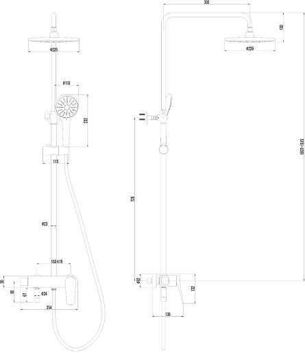 - Размер верхнего душа: 226 мм.