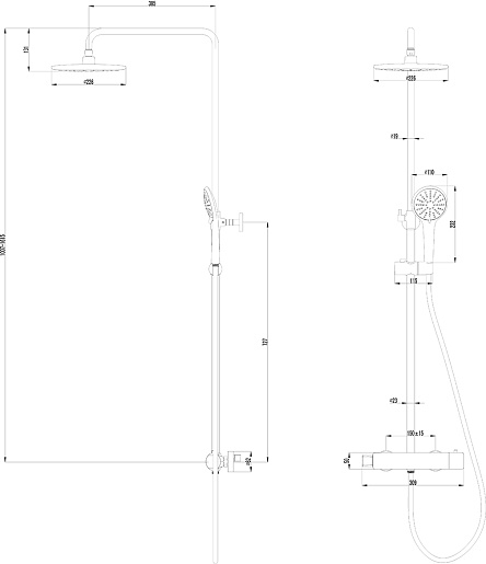 - Размер верхнего душа: 226 мм.