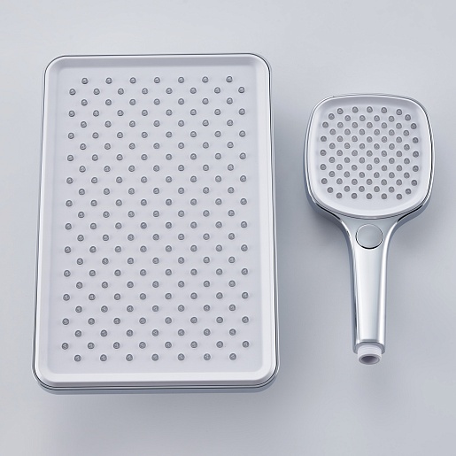 - Двухрежимная ручная лейка из ABS-пластика.