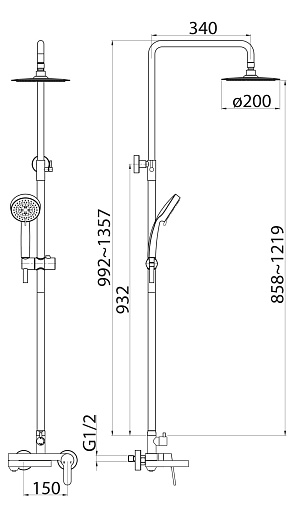 - Дополнительная информация: регулируемая высота верхнего душа.