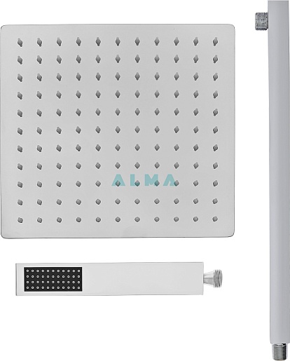 - Верхний душ: нержавеющая сталь, 25х25 см.