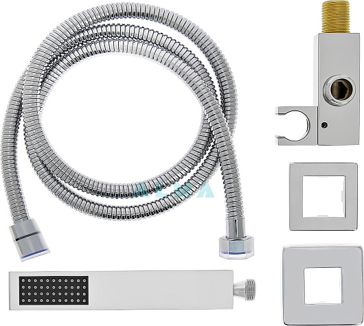 - Шланговое подключение с держателем лейки.