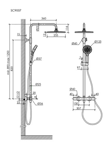 - Размер верхнего душа: 25.5 см.
