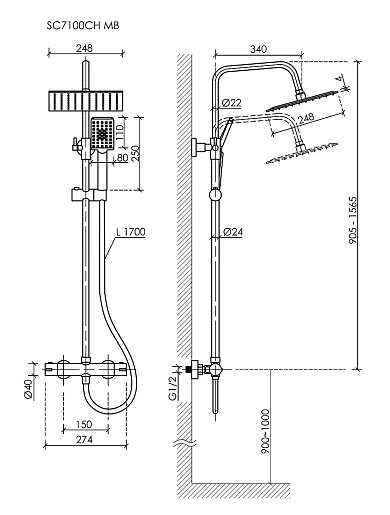 Sancos Душевая система Kanedo с термостатом черная матовая SC7100MB