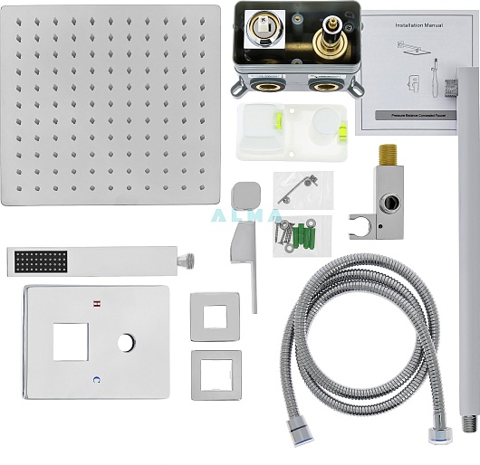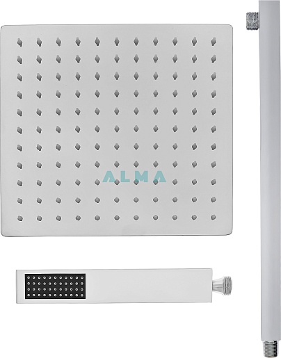 - Верхний душ: нержавеющая сталь, 25х25 см.