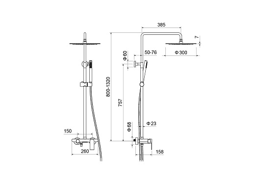 - Размер верхнего душа: 30 см.