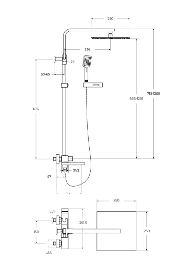 - Дополнительная информация: регулируемая высота верхнего душа, защита от известковых отложений.