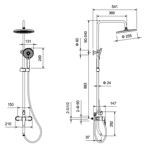 - Размер верхнего душа: 25.5 см.
