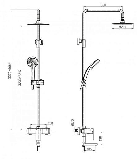 - Дополнительная информация: регулируемая высота верхнего душа.