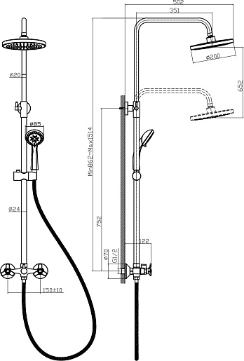 - Размер верхнего душа: 200 мм.