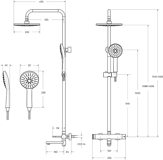 - Вынос верхнего душа: 39 см.