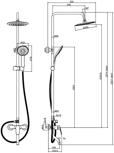 - Регулируемая по высоте штанга: 1074 - 1664 мм.