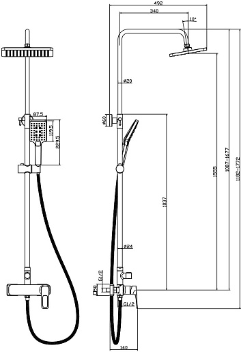 - Длина душевого шланга: 1.5 м.