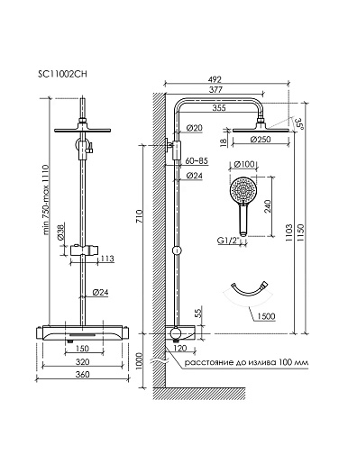 Sancos Душевая система Teo с термостатом хром SC11002CH
