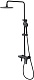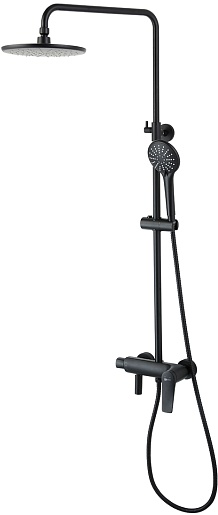 Комплектация: смеситель, шланг, душевая лейка, держатель лейки, верхний душ, штанга.