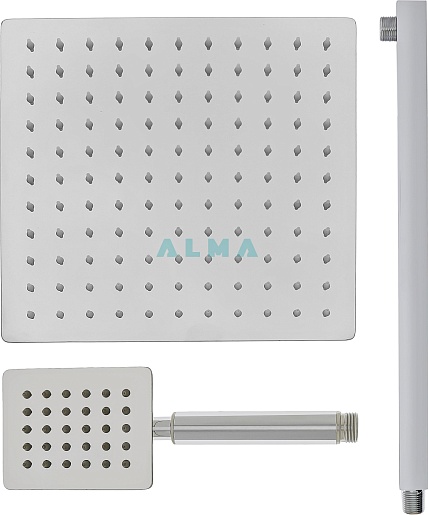 - Верхний душ: нержавеющая сталь, 25х25 см.