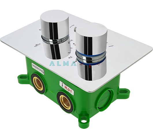 - Термостатический смеситель на три потребителя из латуни.