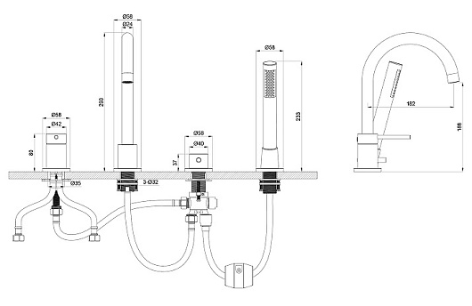 - Встроенный девиатор автоматически переключает поток с душа на излив при закрытии воды.