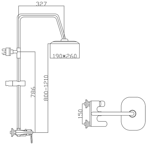 - Размер верхнего душа: 26 см.- Длина излива: 8 см.