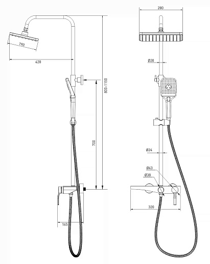 Mixline Душевая стойка 554233 вороненая сталь