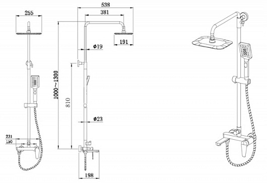 - Размер верхнего душа: 19.1 см.