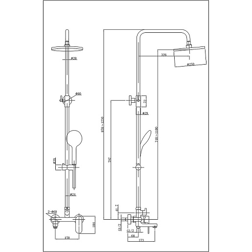 - Комплексное решение: В набор входит всё необходимое — верхний душ (25 см), ручная лейка с 3 режимами, практичная штанга и хромированный смеситель.