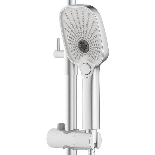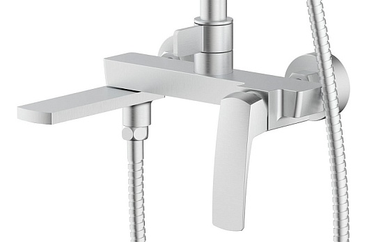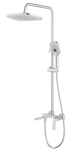 - Система включает всё необходимое для полноценных водных процедур: верхний душ «тропический ливень» с квадратной панелью, создающий равномерную и нежную струю, и удобную ручную лейку на металлическом шланге длиной 150 см. - Переключайтесь между двумя режимами подачи воды одним движением.