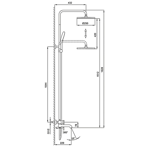 - Размер верхнего душа: 25 см.