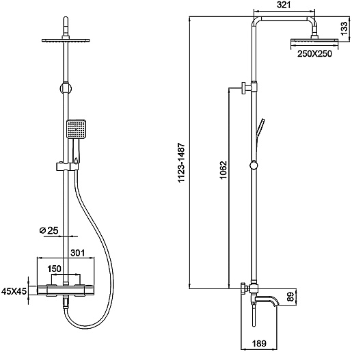 - Размер верхнего душа: 25 см.
