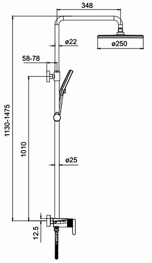 - Размер верхнего душа: 25.4 см.