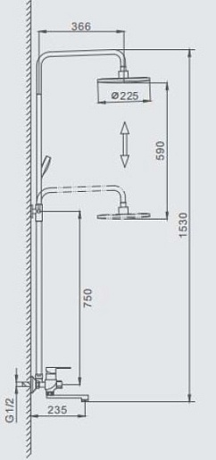 - Душевая стойка не регулируется по высоте.