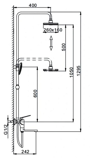 - Вылет верхнего душа: 40 см.