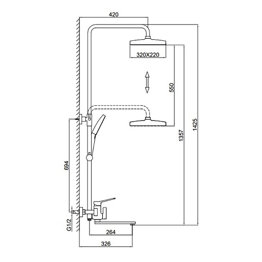 Frap Душевая стойка H61 F2461-3 золотой сатин