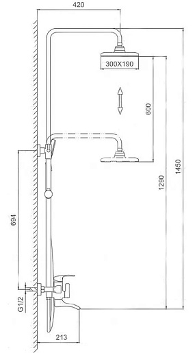 - Вылет верхнего душа: 42 см.