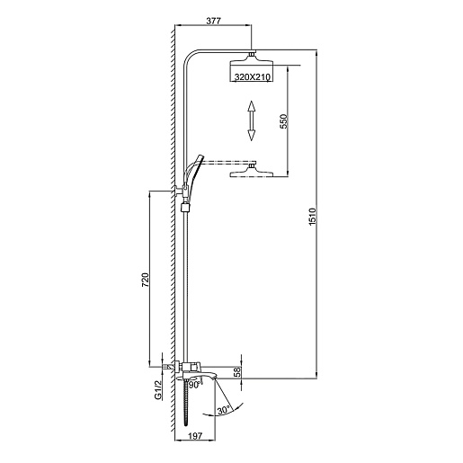 - Вылет верхнего душа: 37.7 см.