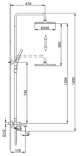 - Вылет верхнего душа: 41.9 см.