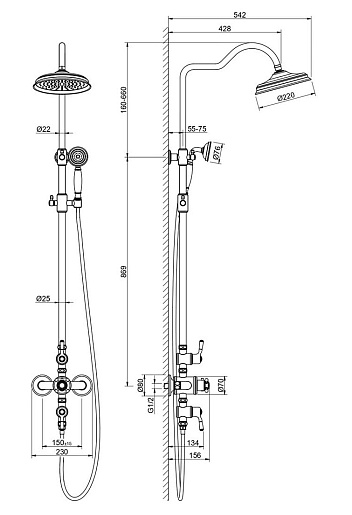 - Размер верхнего душа: 22 см.