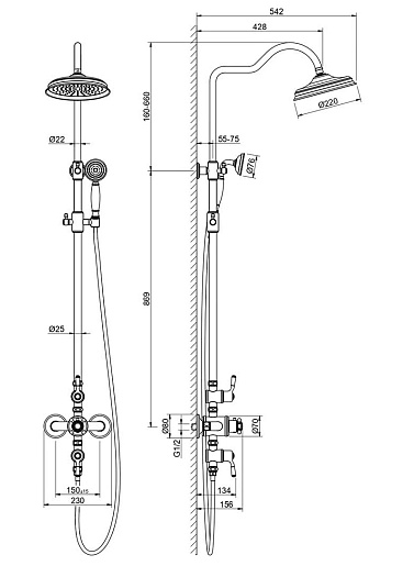 Aquatek Душевая стойка Классик AQ2563PG полированное золото