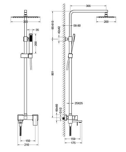 - Размер верхнего душа: 30 см.