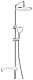 Комплектация: душевая штанга, шланг, душевая лейка, держатель лейки, верхний душ, полочка.