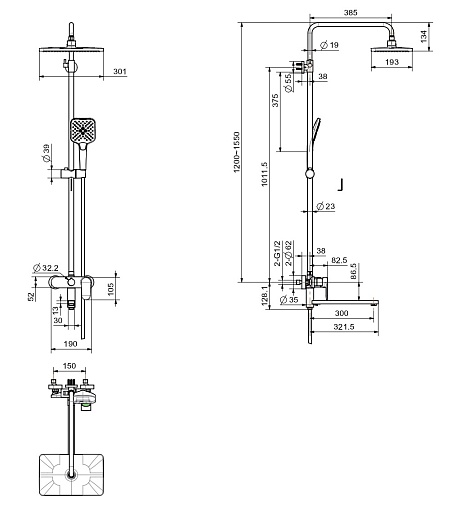 - Размер верхнего душа: 30.1 см.