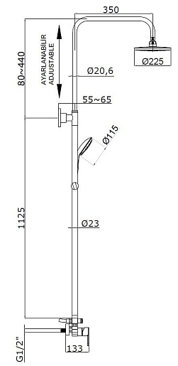 - Верхний душ увеличенного размера (225 мм) для комфортного принятия душа.