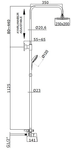 - Просторный верхний душ диаметром 230 мм для комфортного принятия процедур.